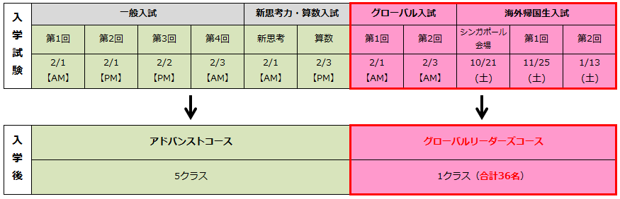(国・算受験者でグローバルリーダーズコース希望者は英語面接あり)