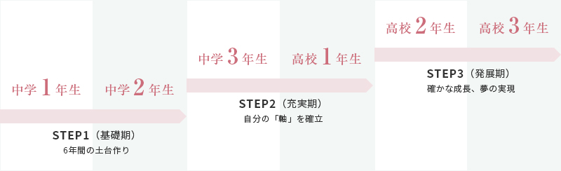 6年間を3つのステップに分けて様々なことに取り組んでいきます。