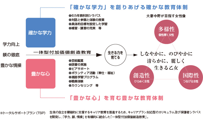 自己と同時に他者及び社会を見つめ、体験して理解していくことで、将来像を描きます。そしてその実現のために必要な学力や人間性を高める学習を、成長のステップに合わせて実施します。