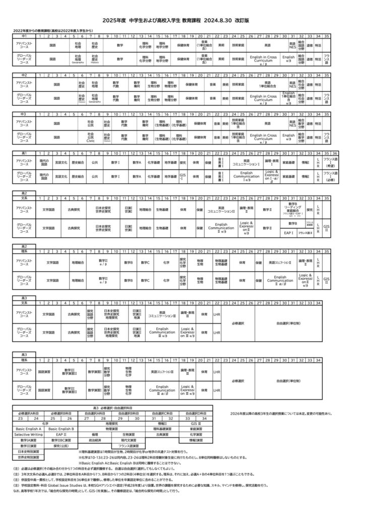 令和7年度中学入学生 教育課程(年次ごとに変更することもあります)