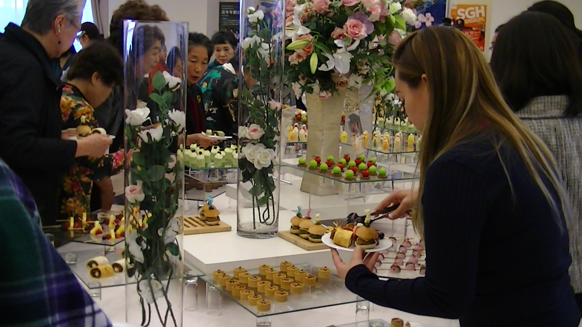 お肉やお魚の冷製、温製料理、パスタ、デザートの盛り合わせ等が並び、美味しい料理と一緒に皆様も会話がはずんでおりました。