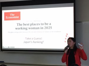 What struck me most in Dr. Shaw’s lecture was how much lower Japan’s gender gap ranking was than I had expected. I had assumed Japan would be around 58th out of 148 countries, thinking that although gender equality was still a work in progress, it was steadily improving. However, learning that Japan actually ranked 118th was truly shocking.