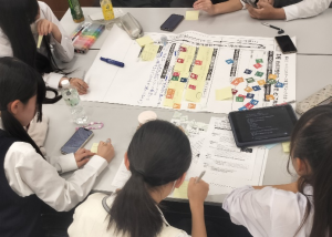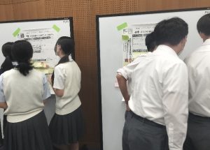 グループ活動での題材となったポスターでは、提案、行動を上段に設定し、グループテーマに対して課題発見から比較研究へとつなげました。SDGsの番号ごとの8テーマに対する新たな目標設定を促し、国際比較や多様な視点で分析した結果、「働き方と少子化の関連性」など、テーマを横断する事象に気づくことができました。