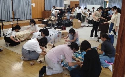 8月19日(火)~22日(金)の合宿が始まりました。まずは荷解き。大事な楽器を丁寧に運んでくれたトラックの運転手さんに感謝。先輩たちの指示に合わせて、自分たちが使いやすいように準備を行いました。