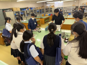人工臓器や人工血管、ペースメーカーなど、医療の未来を切り開く研究が進められている研究室を訪問しました。実物を手に取った瞬間、その軽さや小ささに驚き、最新技術の精密さを実感しました。「下町ロケット」撮影協力の話もあり、ものづくりの現場が社会や文化にまで広がっていることに感銘を受けました。電子回路の実習見学では、研究の実践的な一面も垣間見ることができました。