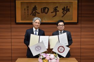 令和6年4月19日、千代田区の順天堂大学にて、代田浩之 学長、ニヨンサバ・フランソワ 国際教養部長、細谷芳三 学校法人順天堂 総務局長のもとで、本校との高大連携に関する協定調印式を行い、協定を締結しました。これにより、本校と順天堂大学は、様々な交流、連携を進めていくことになります。
