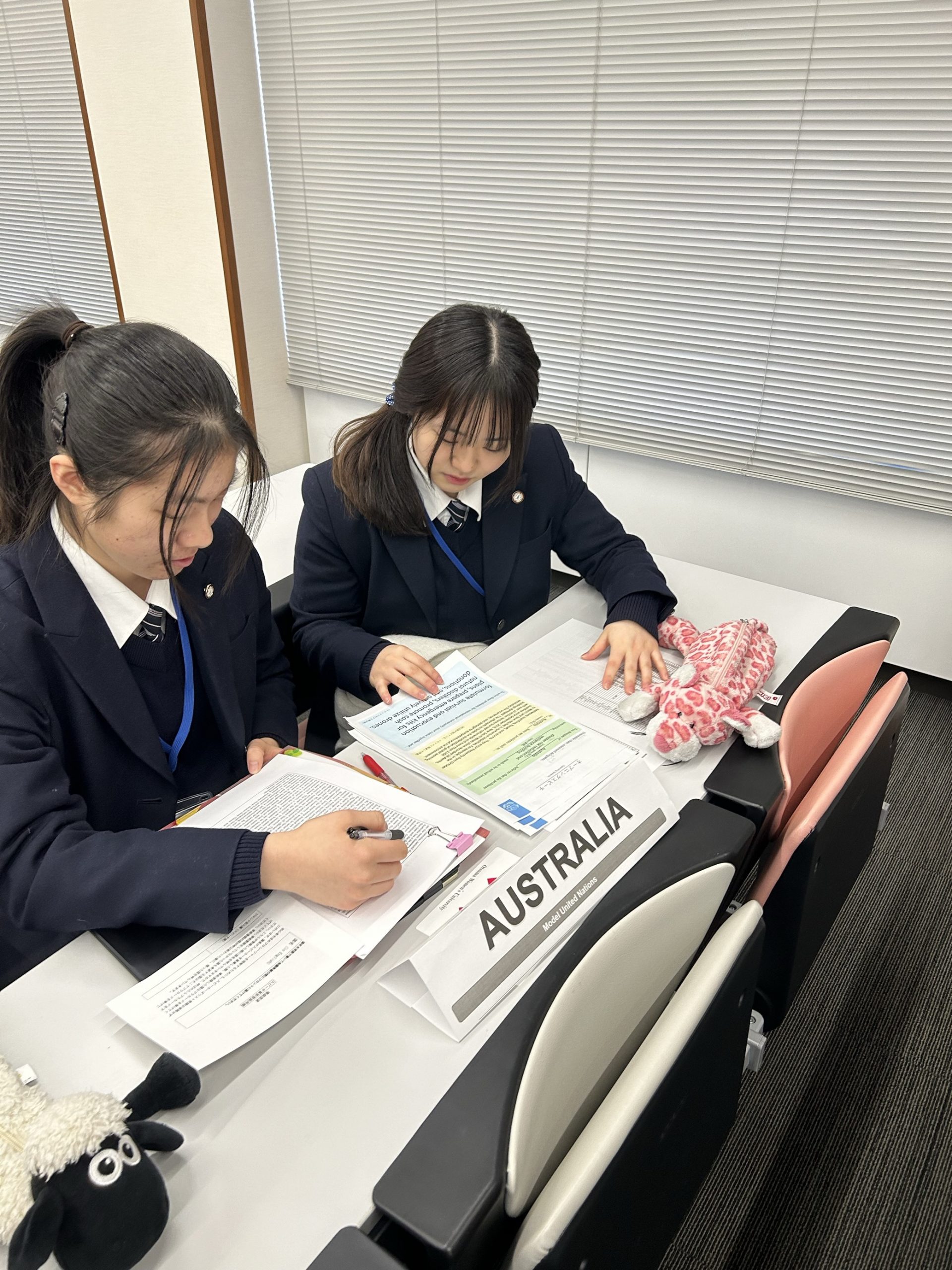 今年度も2023年12月の立命館宇治中学校・高等学校主催模擬国連(立命館大学びわこ・くさつキャンパスでの実施)へのチャレンジに続き、12月26日、27日には、毎年恒例の大妻模擬国連(大妻女子大学千代田キャンパスでの実施)にも本校、高校2年生がチャレンジしてくれました。その参加レポートを紹介します。