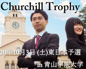 このチャーチル杯英語弁論大会とは、関西学院大学と青山学院大学の英語研究部が合同主催として毎年開催しており、全国の高校生を対象とした英語弁論大会です。また、大会名のチャーチル杯の由来は、スピーチの名手として有名な英国元首相、故ウィンストン・チャーチル卿のお名前をお借りしたもので、将来国際社会の一員として21世紀を担う青少年に、英語を通して自己主張する機会を与えると共に広くその普及を図り、国際親善に寄与することを目的として創設された高校生対象の英語弁論大会。 1952年から始まり、今年で69回目を迎える歴史ある大会です。