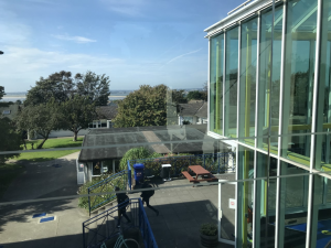 そして2週間の隔離生活が終わり、次に私の学校について話したいと思います。私の学校は、首都のダブリンの中心地から、電車で20分程のところにあります。生徒数は約300名の小さな学校ですが、留学生が多く、インターナショナルな学校です。初日の学校は、楽しみでもありましたが、自分の時間割も分からなかったので、不安や緊張もありました。ですが、初めての授業が終わった直後に、スイスからと、サウジアラビアからの留学生の子たちが話しかけてくれて、今では楽しい学校生活を送ることができています。