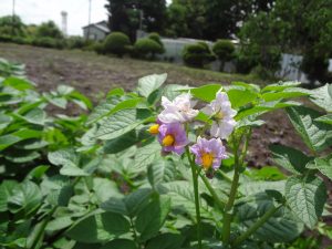 ↑ 家庭菜園にて。これは何の花だかわかりますか?(バターと一緒に食べると美味しい野菜ですよ)