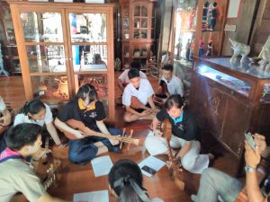 午後は、地元の花を使っての花飾りの作成、タイ語レッスン、もち米を使った地元のおかしづくり、北タイの伝統楽器体験の4グループに分かれ、それぞれローテーションで全ての体験を行いました。