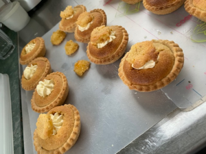 Next I will write about cooking I did on the weekend with my host mother. My host mother’s cooking is very nice. I made vegetable pie, fish pie, cheesecake, cork cake, chocolate slice and egg cake on Sunday. Especially making cork cake was very challenging to me because it has many complicated processes, but finally, I did it very well, which looked very cute. It looked like professional ones made in shop.