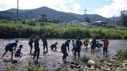 2019.08.08 お知らせソフトボール部 合宿レポート④合宿4日目。今日も快晴です!! 午前中はスライディング練習。砂だらけになった身体を、午後の川遊びできれいに。きらきらとした川面、みんなの笑顔。最高の息抜きとなりました。