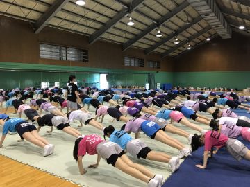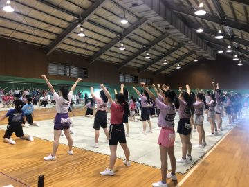 2019.08.05 お知らせチアリーディング部 合宿レポート チアリーディング部は、8/4から千葉県大網白里市で2泊3日の夏合宿に臨んでいます。初日は基礎トレーニングからスタートしました。暑さに体を慣らしつつ、中学2年生以上は2週間後に控えている大会に向けての練習に取り組みました。中学1年生17名は暑さに負けず、元気にスタンツやタンブリングの基礎練習に励みました。海沿いで風もあり、思っていたよりも涼しい環境です。夜のミーティングではチームごとにこの合宿の到達目標を明確にし、チーム間で共有しました。チアリーダーとしての振る舞いはもちろん、チーム力を高めることも、この合宿の目標です。安全面には十分に気をつけつつ、2日目もみんなで頑張ります!