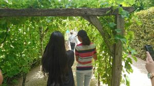 こちらのぶどう畑はふつう、背の低い木が多いですが、ここではぶどうのトンネルのようになっていました。お庭が好きな方には特にオススメなお城です!