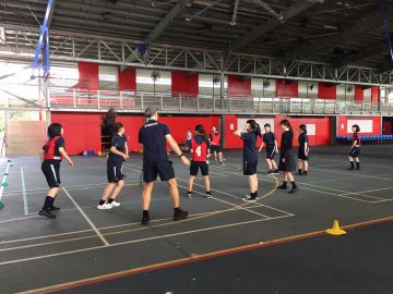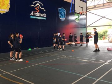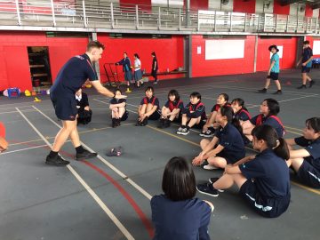 Lunch on the Lawnの後は、13人でAustralian Football League(AFL)の授業に参加しました。AFLはラグビーに似たオーストラリア発祥のスポーツです。楕円形のボールを蹴ったりバウンドさせたりしてゴールを目指しますが、ボールを投げたり相手に触れたりすると反則になります。見た目以上にボールをコントロールするのが難しいのですが、King先生がユーモアたっぷりに教えてくださったので、妻中生たちも夢中でボールを追いかけていました。
