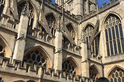 目的地、The Abbey (バース修道院)。7世紀に設立された最大規模の垂直ゴシック建築を誇る建造物。皆、その迫力に圧倒されていました。
