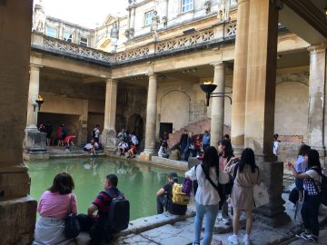 そして、2000年以上前、紀元前にローマ人たちが築き上げた神々に祈りをささげるところであり、また一大スパ複合施設でもあったThe Roman Baths. ここは博物館にもなっていて、古代ローマ人の生活の様子とともに、その様々な技術、社会制度、神々への信仰という古代ローマ人の精神世界を教えてくれる場所です。生徒たちは非常に熱心に音声ガイドに耳を傾け、古代ローマ人に思いをはせていました。