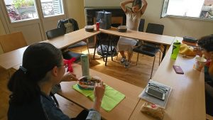 今日は、トゥールラングという語学学校での様子をお伝えします。午前中の授業は9時から12時半分くらいまでで、休憩もあります。お昼は近くでサンドイッチを買って、教室で食べました。午後の授業は2時から始まります。参加してみたところ、今回のテーマは好き嫌いでした。好き・大好き・目がないくらい大好き、あまり好きではない・嫌い・大きらいというようにそれぜれのレベルの違いなどを確認して、好きなもの嫌いなものなどをお互いに質問し合いました。理由も付け加えられていたので、ホームステイでも話が広がることでしょう!