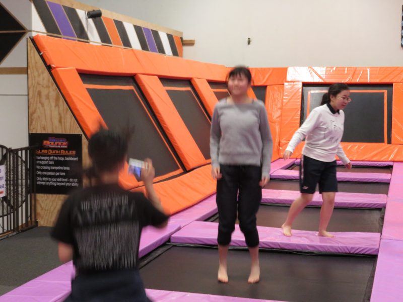 お昼のお弁当を食べたら今日はMega Bounceというトランポリンの施設にお出かけです。