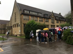 昨日のさわやかな晴天から一転して、今日は雨。風も強く、夏にしてはかなり寒くなりました。It’s raining sideways. という感じです。雨にも負けず、今日も授業に臨みます。