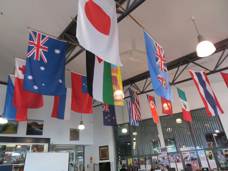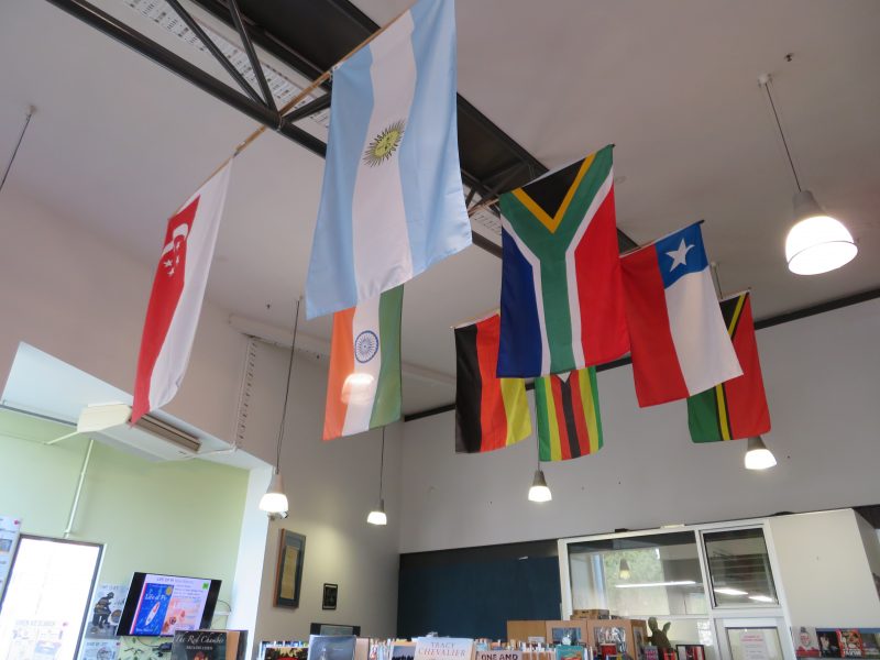 NPGHの図書館は今International Week というイベントを開催中です。図書館内はこの学校に留学している生徒の出身国の旗が掲げられています。本当にたくさんの国から生徒が来ていることに驚かされます。
