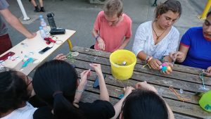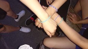 夕食後のアクティビティはスポーツ・ショウタイム・手芸に分かれて楽しみました。本校の生徒はミサンガ作りに挑戦!さっそく装着。みんな嬉しそう。