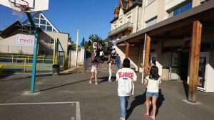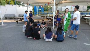 夕食後には、全員が3つのグループに分かれて、就寝時間10時ギリギリまでドロケイのようなゲームやバスケット、バドミントンを敷地内で楽しみました。ゲームを一緒に楽しんだことで、他の国のお友達とも少しずつ打ち解けてきたような…。続きはまた明日お送りします!