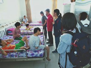 午後は、結合双生児のベトちゃん・ドクちゃんのいたTUDU病院平和村を訪問しました。35人の枯葉剤被害者の子どもたちの暮らす施設です。
