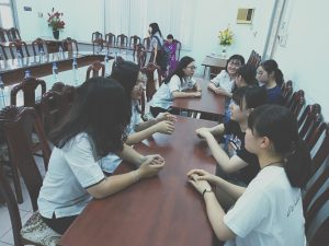 一つ目の学校は、ホーチミンでトップクラスのエリート校で、フランス人が創立した高校Le Hong Phong High Schoolです。大妻中野の生徒たちと同世代ならではの話題に盛り上がりました。