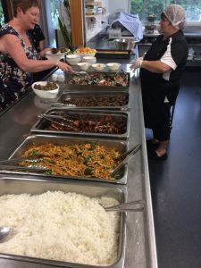 アフタヌーンティーを食べたあとは1時間ほど夕食まで時間があります。そのため、友人とスーパーに行って必要なものを買ったり、自分の部屋でお話をしたり、トランポリンをしたり、映画を見たり‥寮には色々なものがあるので毎日楽しく過ごせています。夜ご飯にはその日の行事や、記念日に沿ったメニューもでます。先日はインターナショナル・デーといったものがありました。寮には現在12人のインターナショナルの生徒がいます。その生徒たちの各国の伝統料理を先生、現地の生徒の方に振る舞うという機会です。中国・ドイツ・韓国‥様々な国の伝統料理が出揃いました。その中で私達日本人は卵60個、小さじ20杯の砂糖を使用して卵焼きを作りました。現地の方々にも卵焼きは好評でした。私にとって初めて見る料理ばかりでしたが、とても美味しかったです。