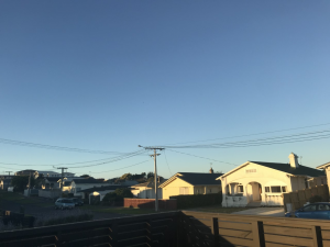 あと半分の留学生活も悔いのないように全力で授業に励んで友達とも沢山話せるように頑張ります。1枚目の写真は犬とビーチに散歩に行った時のもので、2枚目は午後7時頃の私の近所の家々の写真です。