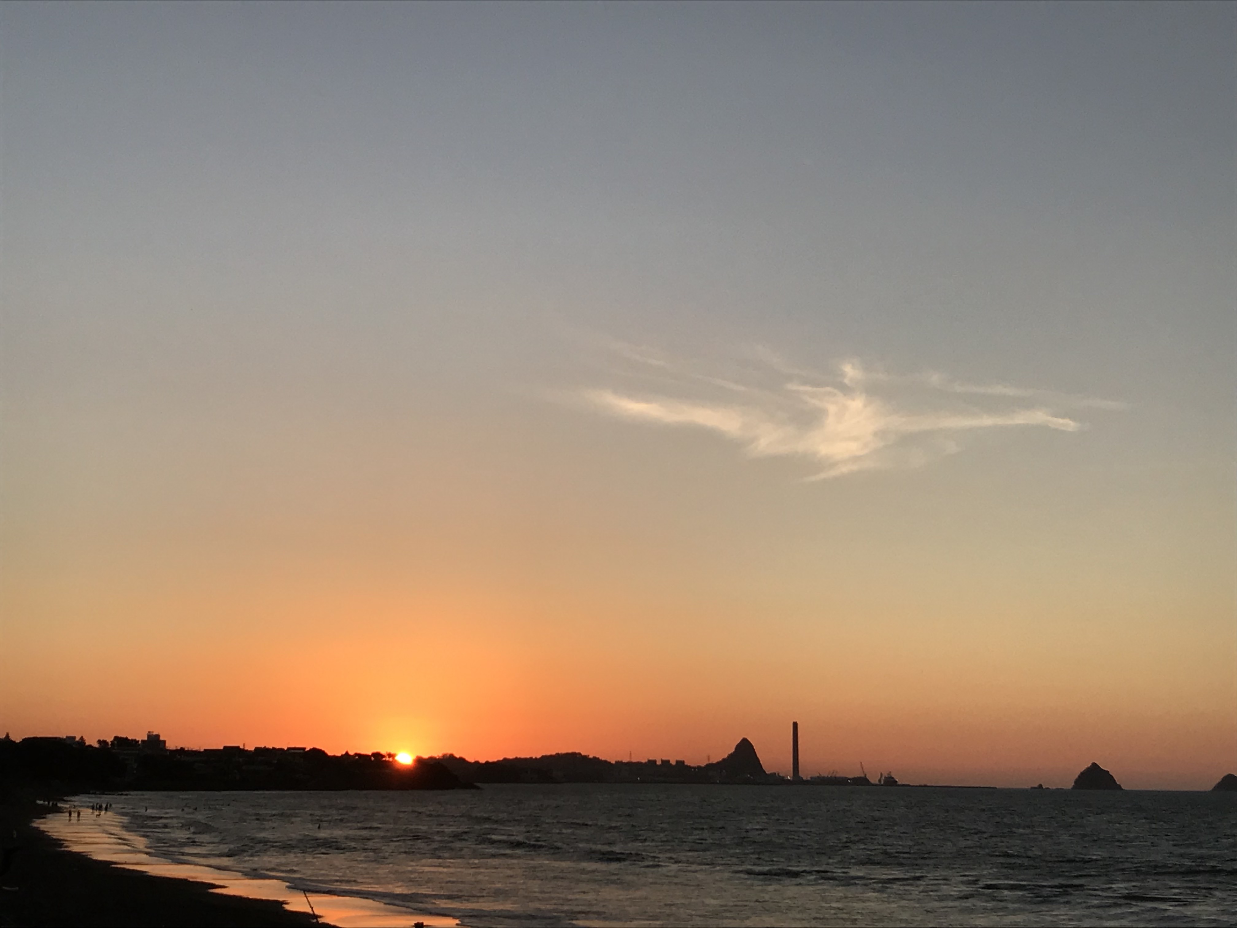 夕ご飯を食べ終わった後は夕日を見に行きました。空が澄んでいてきれいなオレンジ色の夕日を日が落ちるまで見ました。東京ではなかなかこんなに美しい夕日を見ることができないので感動しました!