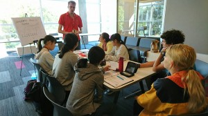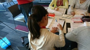 まずは発表する内容をまとめるところから。今回の大きなテーマであった”sustainability”に関するもので、各自印象に残ったアクティビティについてまとめていたようです。午後は文章がまとまった人からポスター作業へ。
