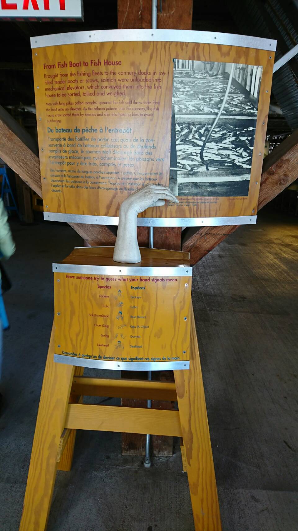 次に訪れたのはジョージア湾缶詰工場です。隣接する博物館も見学しました。この地域で捕れる鮭の種類は何種類もあるそうで、それぞれ剥製もあり大きさや特徴も分かりやすく展示されていました。ちなみに、紅鮭は身が赤いだけでなく、産卵の際に鮭自体も赤くなるので紅鮭というそうです。