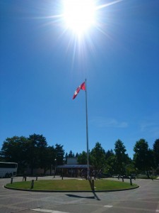 見晴らしの良い高台にあるカナダ国旗のことでした。今日は掛け値なしに美しい快晴で、フラグも輝いていました。