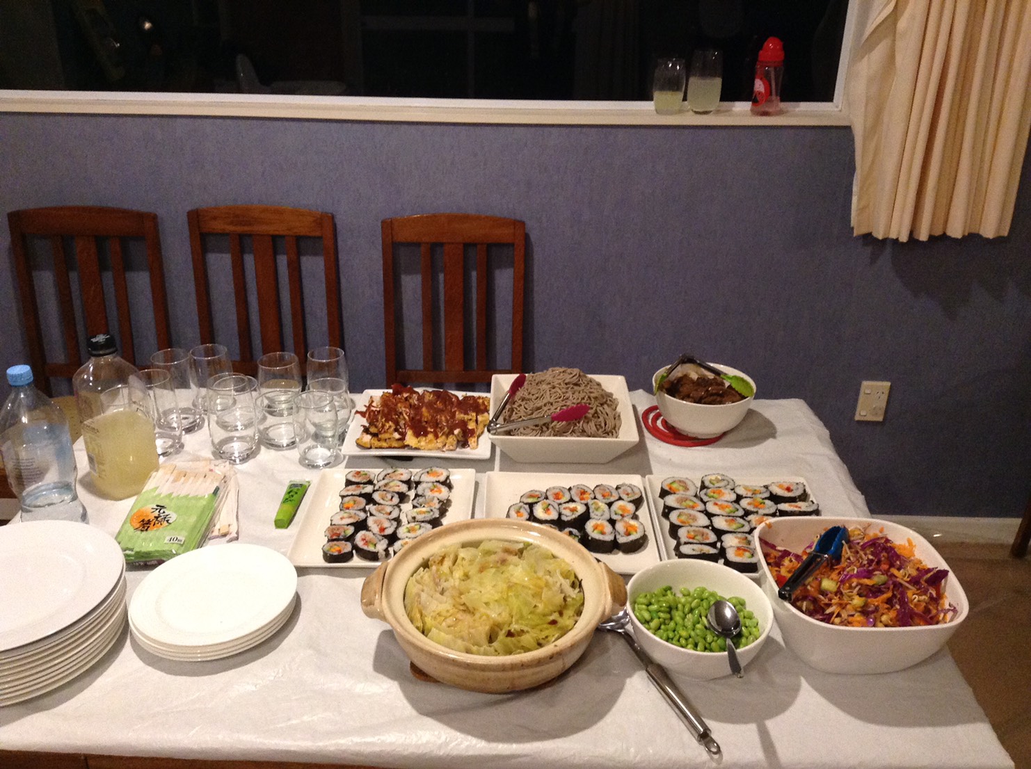 今日は宮澤さんのホームステイ先で日本食パーティーをしました。招待した16人のために3時間かけて沢山のご飯を作りました。とっっっても疲れましたがみんなおいしいと食べてくれました!もっと日本食が広まればいいなと思います!!