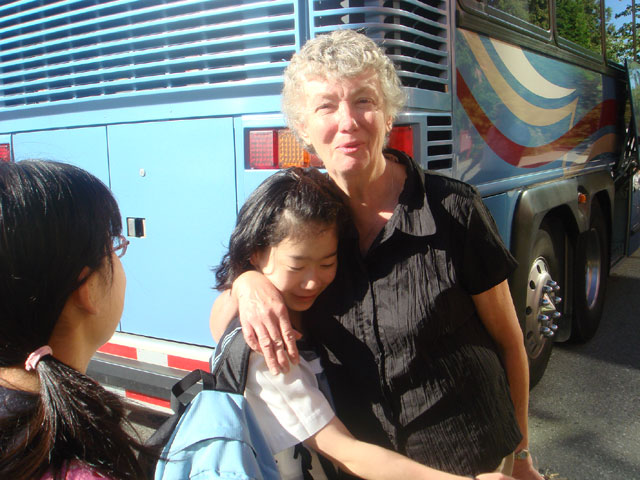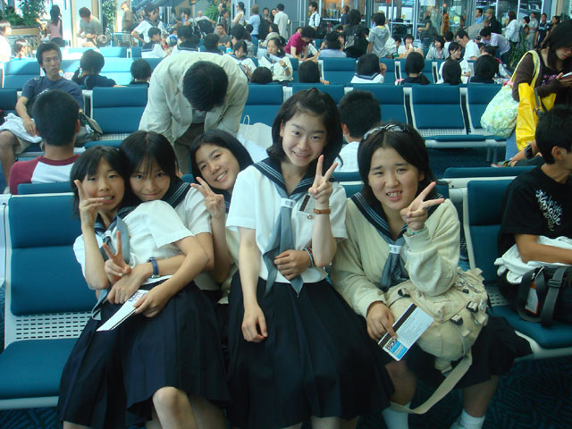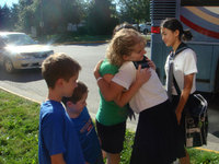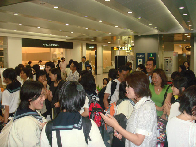 放課後、ホストファミリーのお迎えに笑顔で駆け寄る生徒たち。