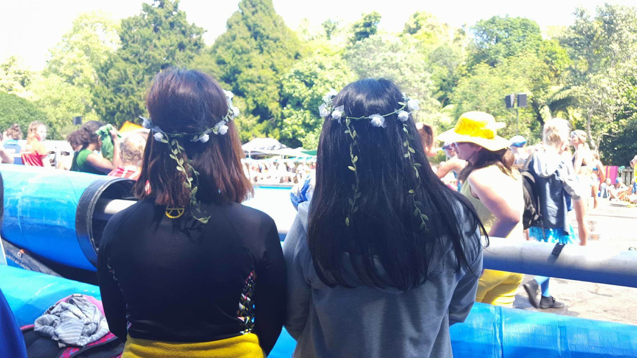 I had two big activities these two weeks in our school, which are “Swimming Sports Day” and “Athletic Day”. On the 25th of February, we had swimming sports competition in our school pool. There are 4 teams called “house” and each house has the name in Maori and house color. I was Tainui, which is green. There are other houses, Aotea (red), Kurahaupo (blue), and Tokomaru (yellow). We have to wear clothes of our own house color. I wore a green T-shirt printed “Taranaki”. Even teachers belong to houses, so they wore house color clothes. I think it was a very interesting system because if you want to participate, you can, but if you don’t want to, then you don’t have to, just relax and watch someone else swimming. We can get some food at the café. There was music, and everyone was dancing. We also have chants in each house and we sing them. There was a competitive game between the students living in the hostel called “Boarders” and the students living in the hostel called “Day Girl”. I didn’t participate, but I enjoyed watching them with my friends.