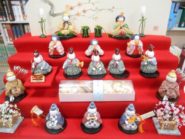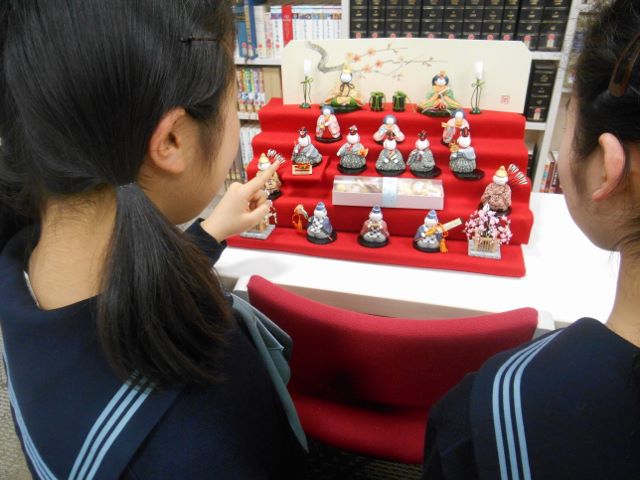 教科書やノートを何冊も携えて図書室を訪れた生徒たちも、お雛さまの存在に気付くと、