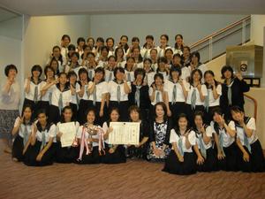 宮澤校長から留学生の4人に修了証が渡され、しっかりと握手を交わします。