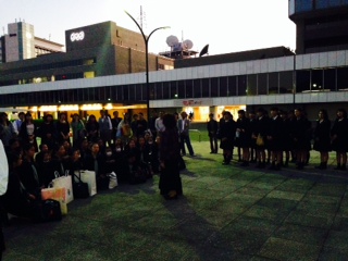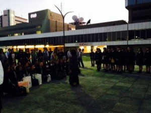 コンクール終了後、NHKホールの前で集合した部員たちを