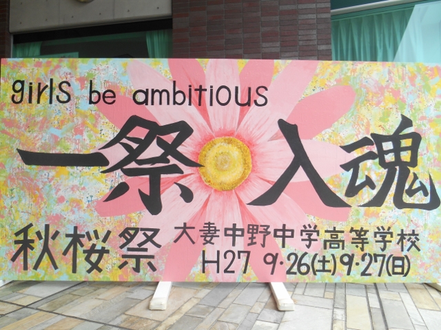 2015.09.26 お知らせ秋桜祭文化の部、開幕!連休返上で頑張った妻中生の努力を天が見守っていてくれたのか、懸念された雨にも見舞われず、絶好の文化祭日和となりました!正門をくぐると、大輪のコスモスが出迎えてくれます。各クラス、新校舎を飾り付ける要領を得たのか、年々凝った外装が目を引くようになっているのも見どころのひとつ。本日はJRC部主催の献血も行われています。みなさまふるってご参加ください。本日の一般入場締切は15:00です。明日に向けてますます盛り上がりを見せている校内、大妻中野の文化祭を心ゆくまでお楽しみください!
