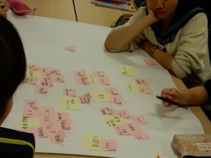 2015.09.12 お知らせ地域の課題を考える(日本・タイ)授業のたびに、見識が広がり、意見交換が盛んになる妻中フロンティアチーム。 今日は日本とタイとを取りあげて、それぞれの社会が抱える問題点や解決法について考えました。黄色のふせん紙にまず、大きな問題点を挙げます。(環境問題、交通問題など)そこから考えられる細かい問題点をピンク色のふせん紙に列挙します。次第に増えていくふせん紙の数からも、意見交換の白熱ぶりが伝わってきますね。 来週は今日の結果をふまえたグループごとの発表会。バリエーションに富んだ意見が期待されます。