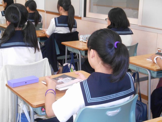 中学1年生、2学期の礼法授業では「ものの持ち方・受け渡し」を