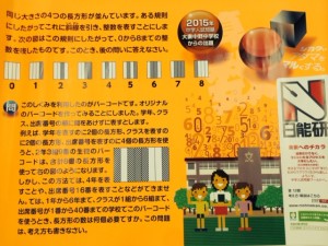 2015.08.24 お知らせ電車内 掲載中 日能研シカクいアタマをマルくする。日能研が首都圏の電車内広告として掲載している「シカクいアタマをマルくする。」車内で見かけることがあると思います。大妻中野 2015年度 算数の問題が取り上げられています。