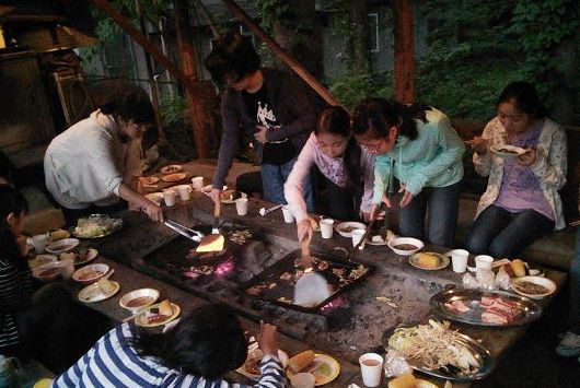 バーベキューです!夕闇のなか、待ちに待ったバーベキューのスタート!