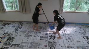 クッキング部はおまんじゅう作りに、書道部は大広間の片付けに、