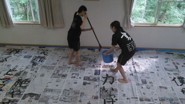 書道部は、朝から文化祭でのパフォーマンスの練習です。