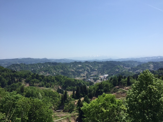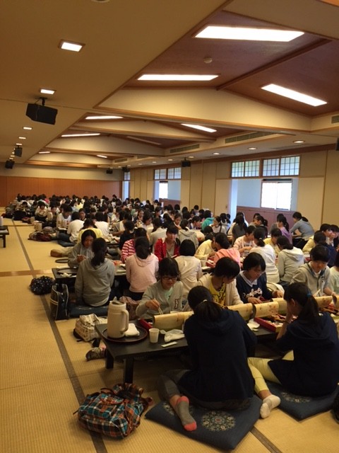 2015.05.14 お知らせ中学2年生 環境学習旅行 その2バスは昼食場所に到着しました。芝峠温泉 雲海での昼食です。名前の通り、雲の海が見える食事処のはずが、今日は快晴で雲海は見えませでした。その代わりに山々、棚田など新潟県らしい風景を見ることができました。昼食は大広間で豪華なお弁当生徒たちからは白米が美味しいとの声が聞かれました。さすが新潟県ですね。 午後はいよいよ田植え体験です。